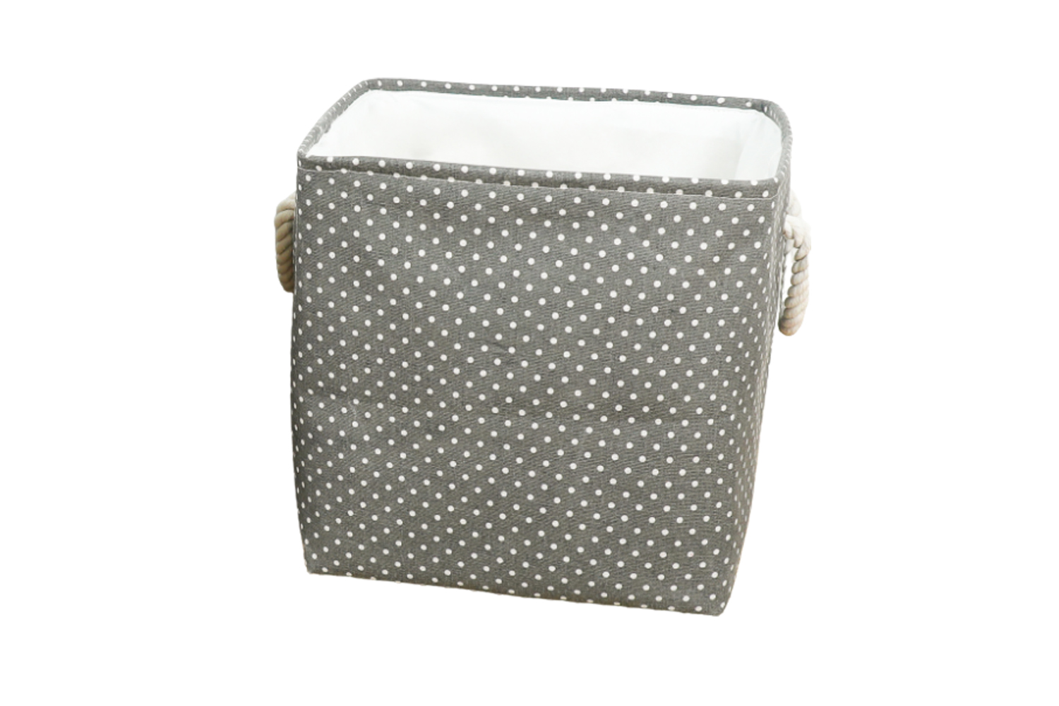 Designed in a soft grey tone with a timeless polka dot pattern, this square storage basket combines style and practicality. Made from durable polyester and finished with sturdy rope handles, it offers a neat and versatile storage solution for modern homes.