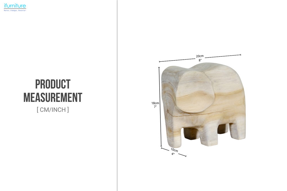 • Elephant-Inspired Design: Sculptural form shaped into a charming elephant silhouette, adding artistic and cultural character.