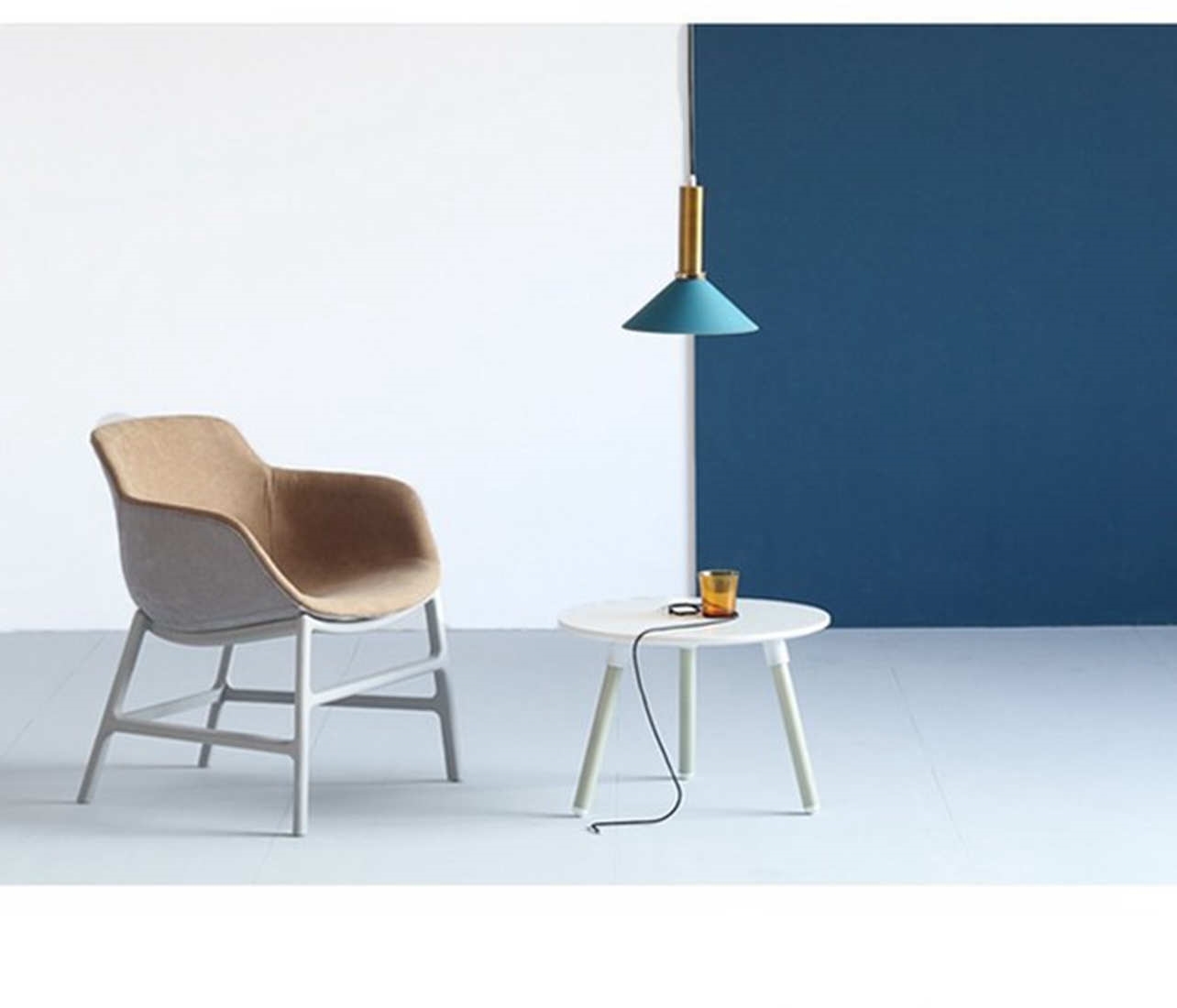 • The white, blue, and pink color chairs are upholstered in PU while the orange and fawn come in fabric material.