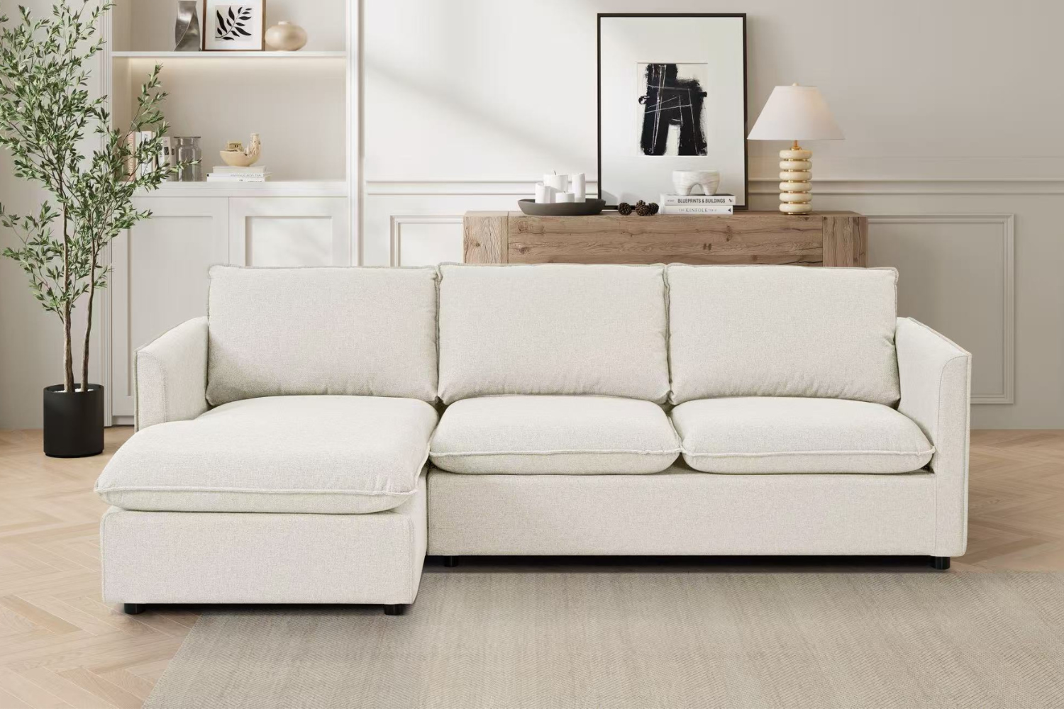 BENDON Fabric Sectional Sofa (Off White) - Chaise Facing Left