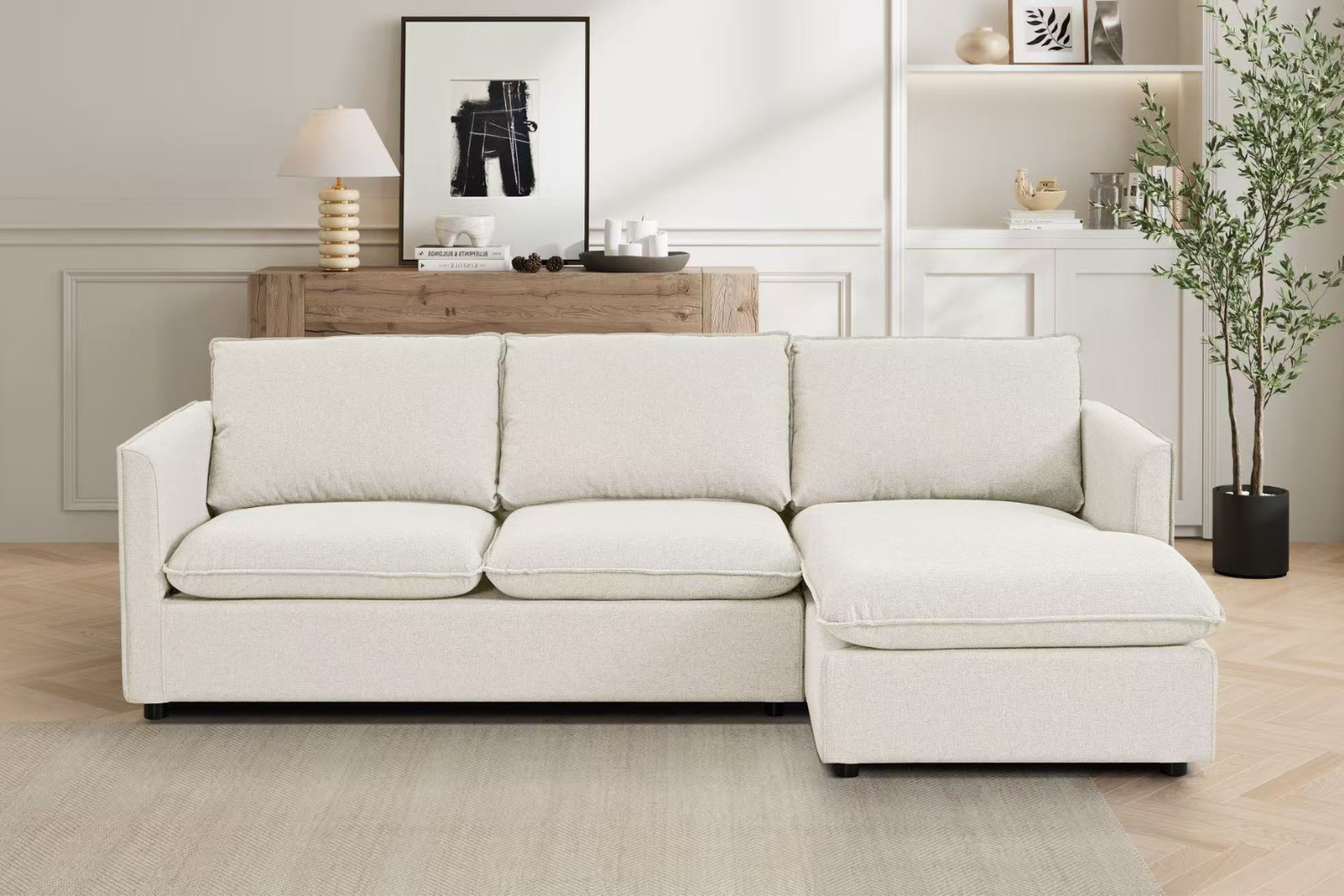 BENDON Fabric Sectional Sofa (Off White) - Chaise Facing Right