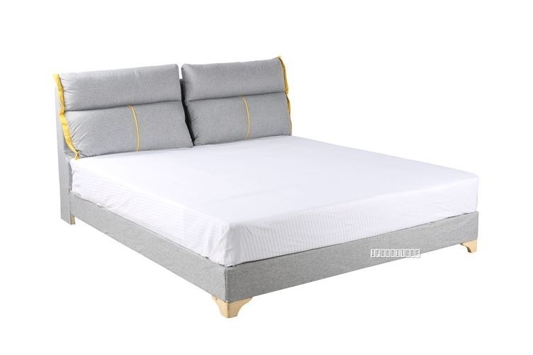 Enjoy reading a book or watch TV before bedtime? This bed is the right one for you, featuring 2 huge comfy cushions on the headboard in grey with the yellow border