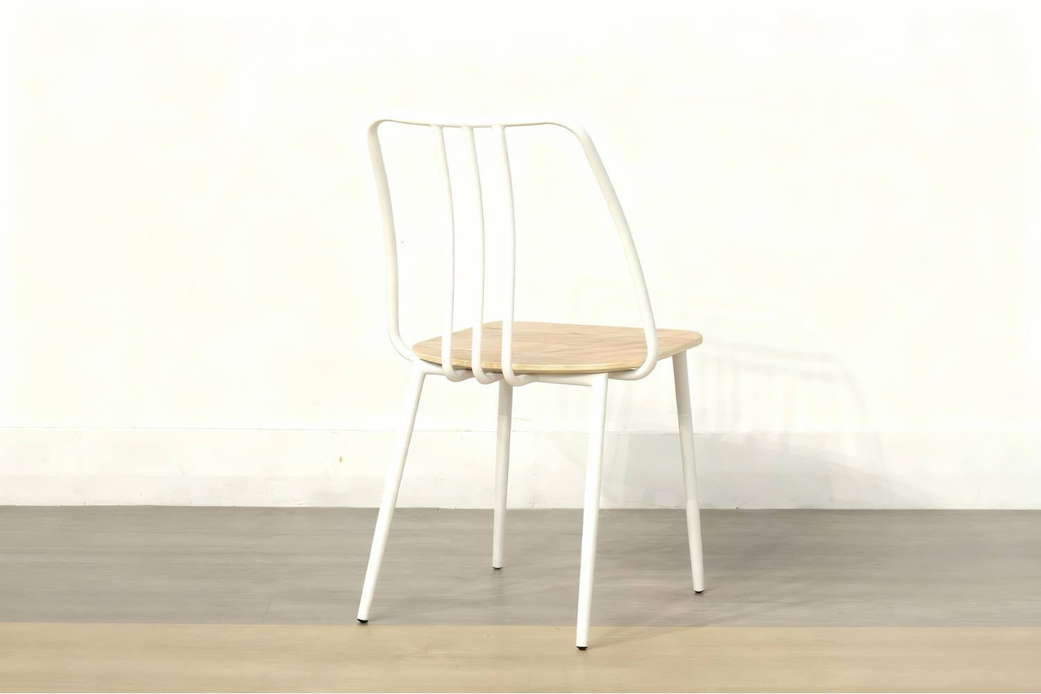 CANAN metal frame dining chair with plywood seat, in black, white or red.
