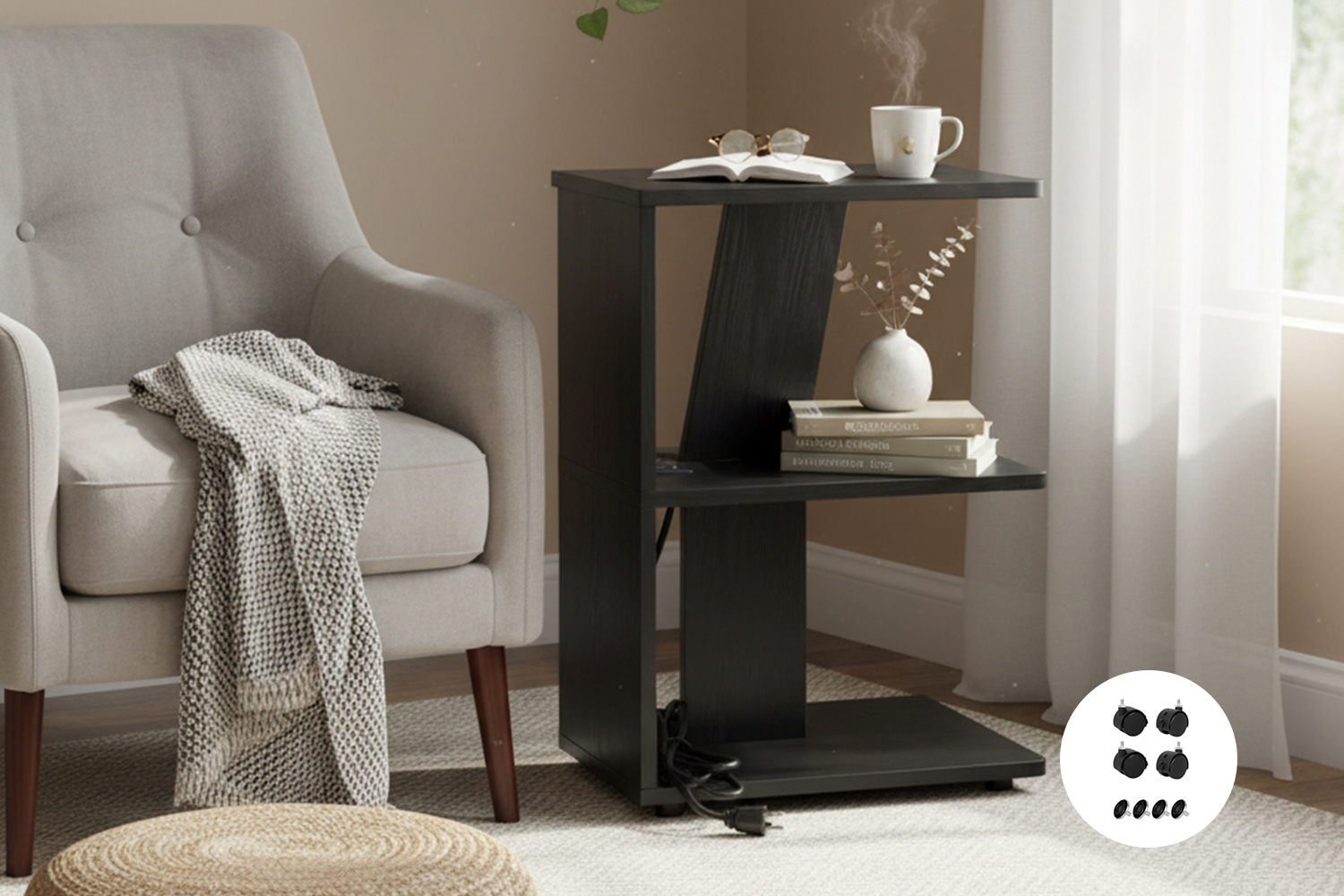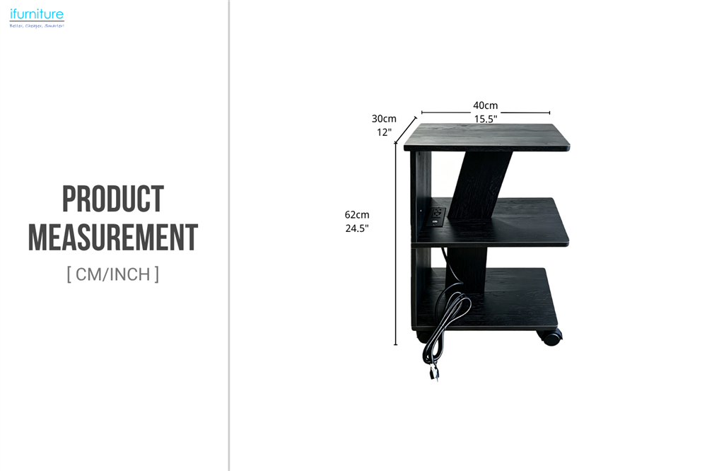 CEDAR Side Table with Dual Power Outlets & USB Ports & Wheels (Black)-iFurniture-The largest furniture store in Edmonton, now landed in Calgary. Carry Bedroom Furniture, living room furniture,Sofa, Couch, Lounge suite, Dining Table and Chairs and Patio furniture over 1000+ products.