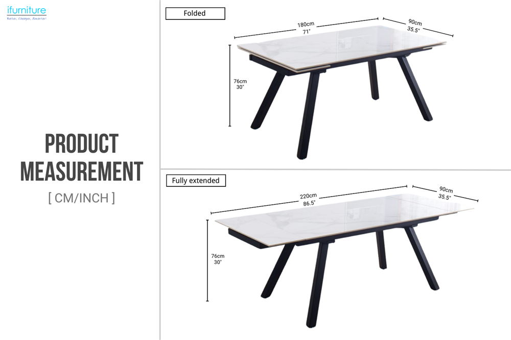 • Durable & Functional: Scratch- and stain-resistant ceramic surface, with easy extendability to accommodate additional guests.