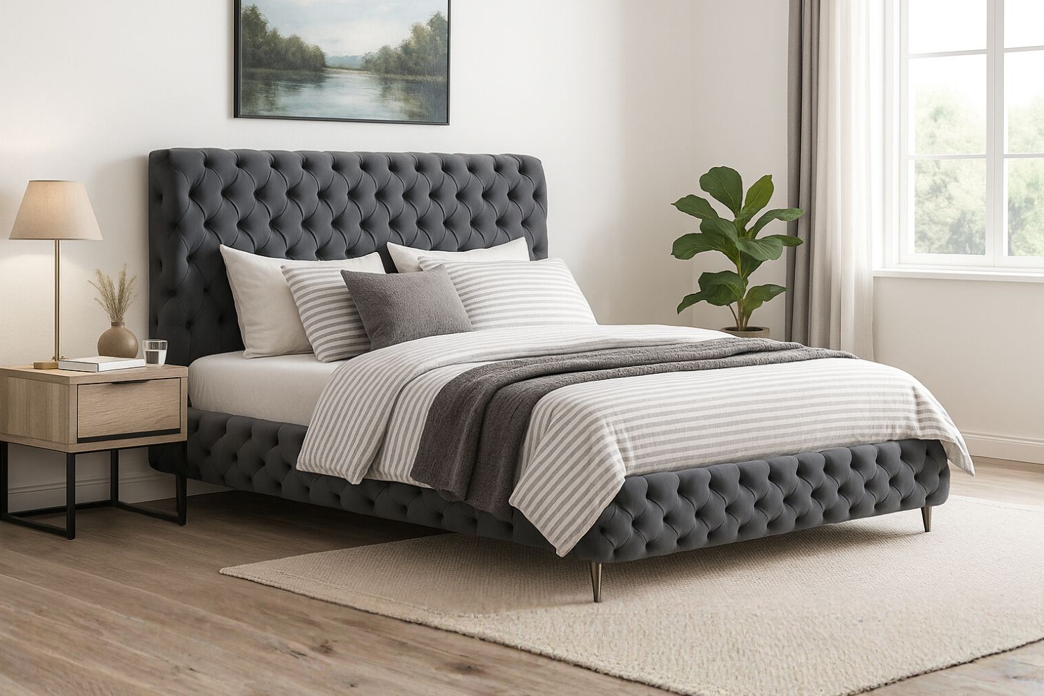 • Elegant Upholstery & Tufted Design: The headboard is upholstered in soft, high-quality fabric with a refined tufted design, blending modern style with a touch of classic luxury to elevate your bedroom.