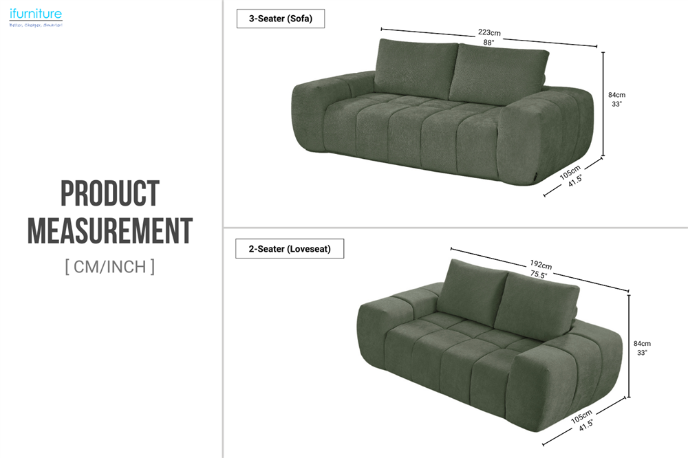 - 3-Seater & 2-Seater Options: Available in both 3-seater and 2-seater configurations, allowing flexible pairing to suit different room sizes and layouts.