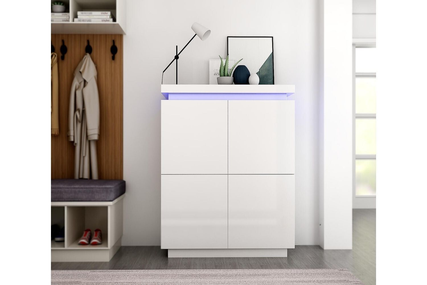 - High gloss white panels