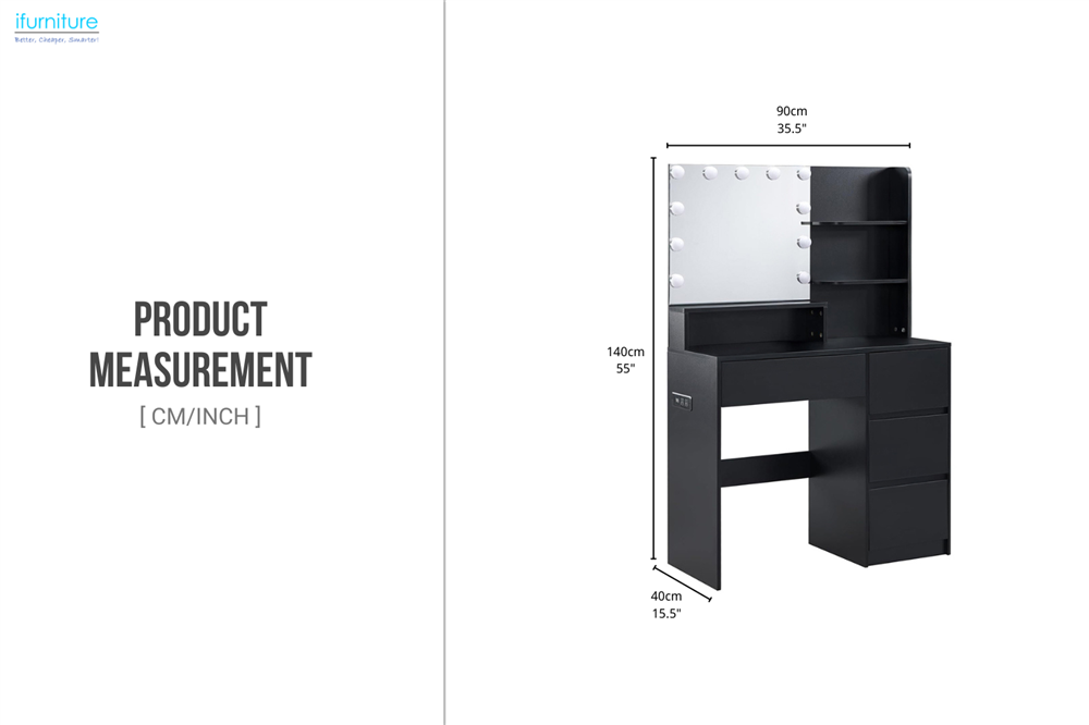 JOANNA Dressing Table with LED Bulb Mirror/Power Station without Stool (Black)-iFurniture-The largest furniture store in Edmonton, now landed in Calgary. Carry Bedroom Furniture, living room furniture,Sofa, Couch, Lounge suite, Dining Table and Chairs and Patio furniture over 1000+ products.