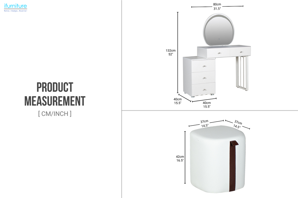 KALINA 5-Drawer Dressing Table with LED Mirror and Zerra Makeup Stool Set-iFurniture-The largest furniture store in Edmonton, now landed in Calgary. Carry Bedroom Furniture, living room furniture,Sofa, Couch, Lounge suite, Dining Table and Chairs and Patio furniture over 1000+ products.