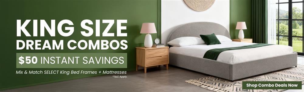 - All King Size bed frames and mattresses featured above are eligible for purchase as a Bed and Mattress Combo Deal, entitling customers to a discount of NZD $50 per qualifying combination.