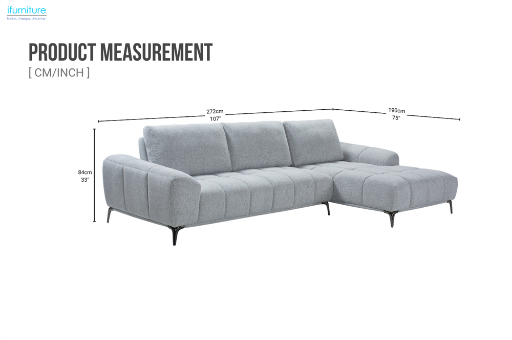 LENNOX Fabric Sectional Sofa/Sofa Bed with Adjustable Backrest - Chaise Facing Right