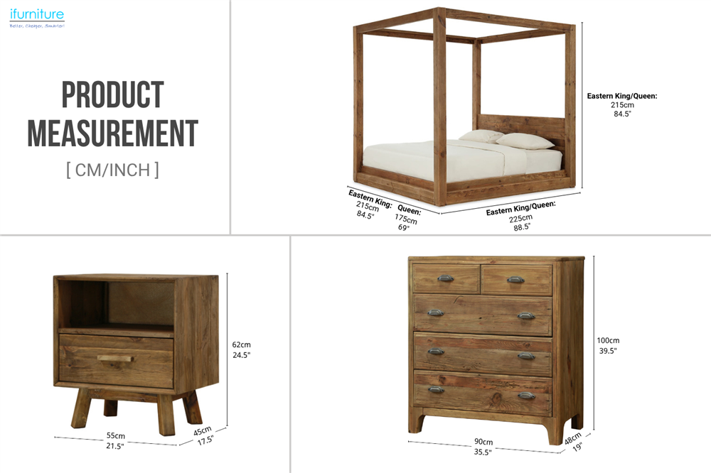 • Natural Rustic Finish: The warm tone and authentic texture of reclaimed timber bring organic charm and timeless appeal to any bedroom setting.