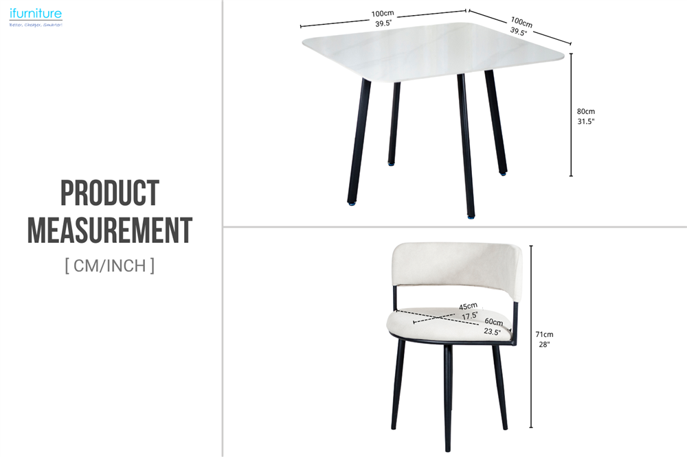 The dining set combines modern elegance with everyday practicality. Featuring a sleek rectangular table with a premium sintered stone top and four upholstered fabric chairs that fit fully underneath, it’s perfect for maximizing compact dining areas. The clean lines, neutral palette, and refined marble-like finish bring a sophisticated, minimalist touch to any modern home or apartment.