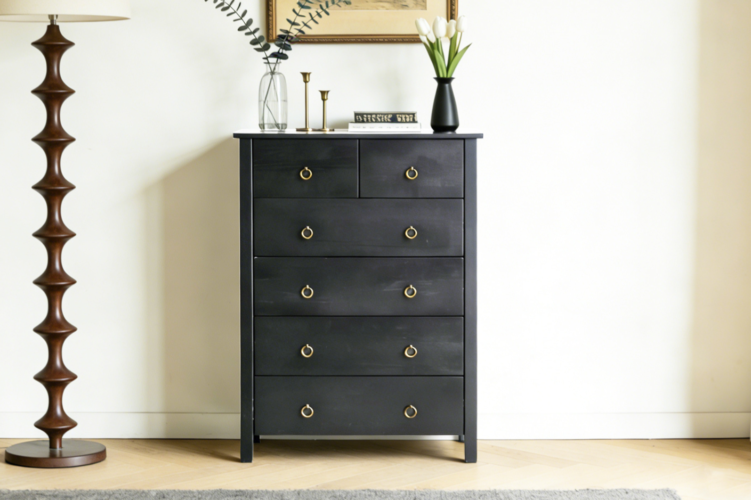 METRO 6-Drawer Solid Pine Wood Chest (Black)