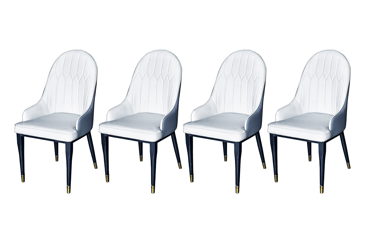 Ideal Vegan Leather: Upholstered in smooth vegan leather that delivers a refined appearance, is easy to maintain, and ideal for everyday dining settings.