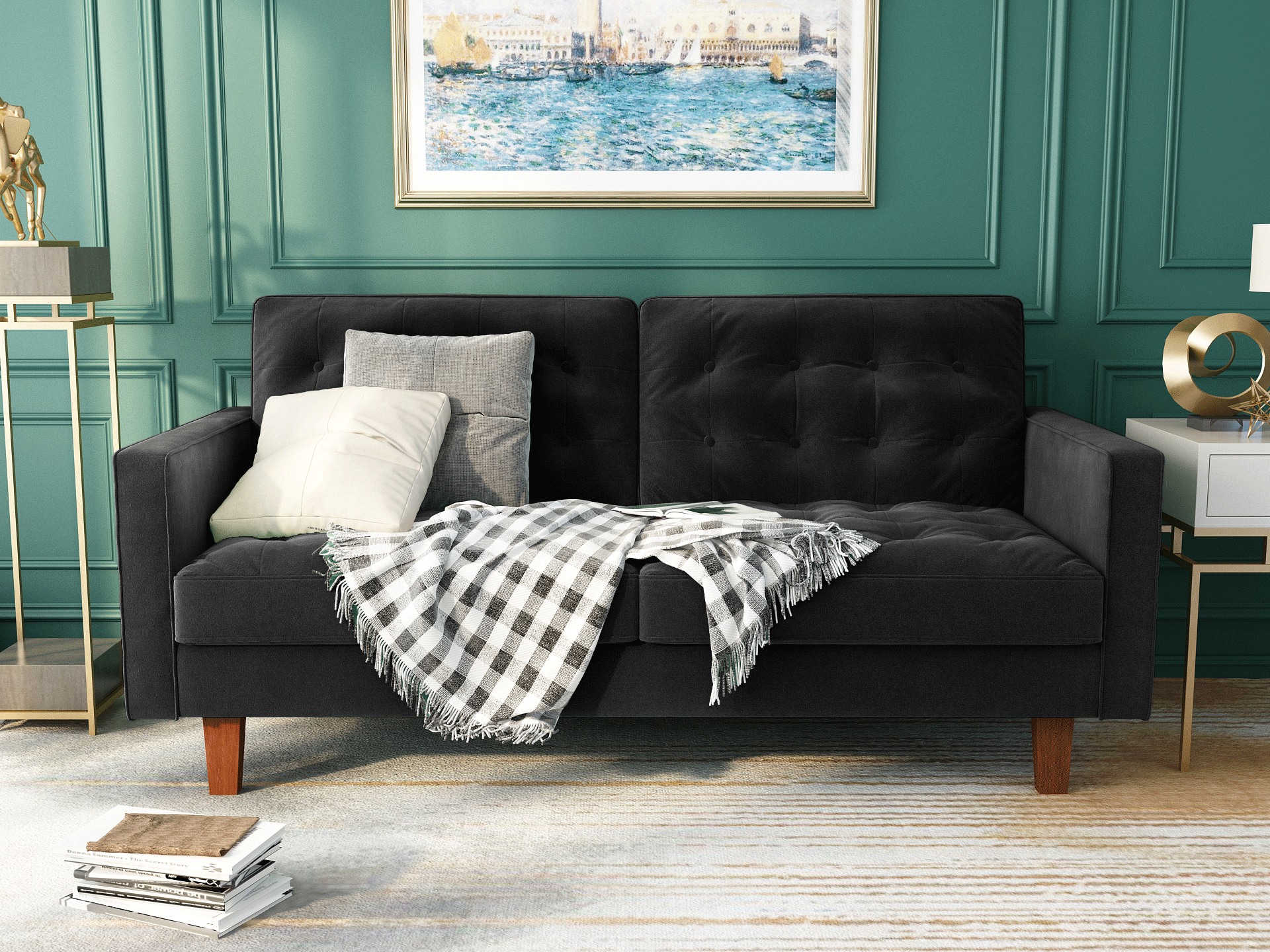 The Miliou Sofa Set is a mix between mid-century and a refined retro style with its classic lines, Tufted Design With wood legs. It comprises a 2 & 3 seater. It is upholstered in 9 attractive colours, each sofa has two smooth back cushions (held in place by velcro) with soft and comfy button detailing.