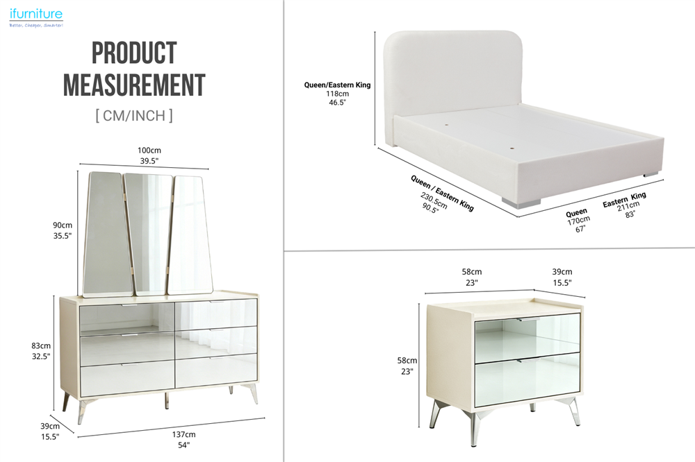 MIRORA Mirrored Bedroom Combo Set - 5PC Eastern King