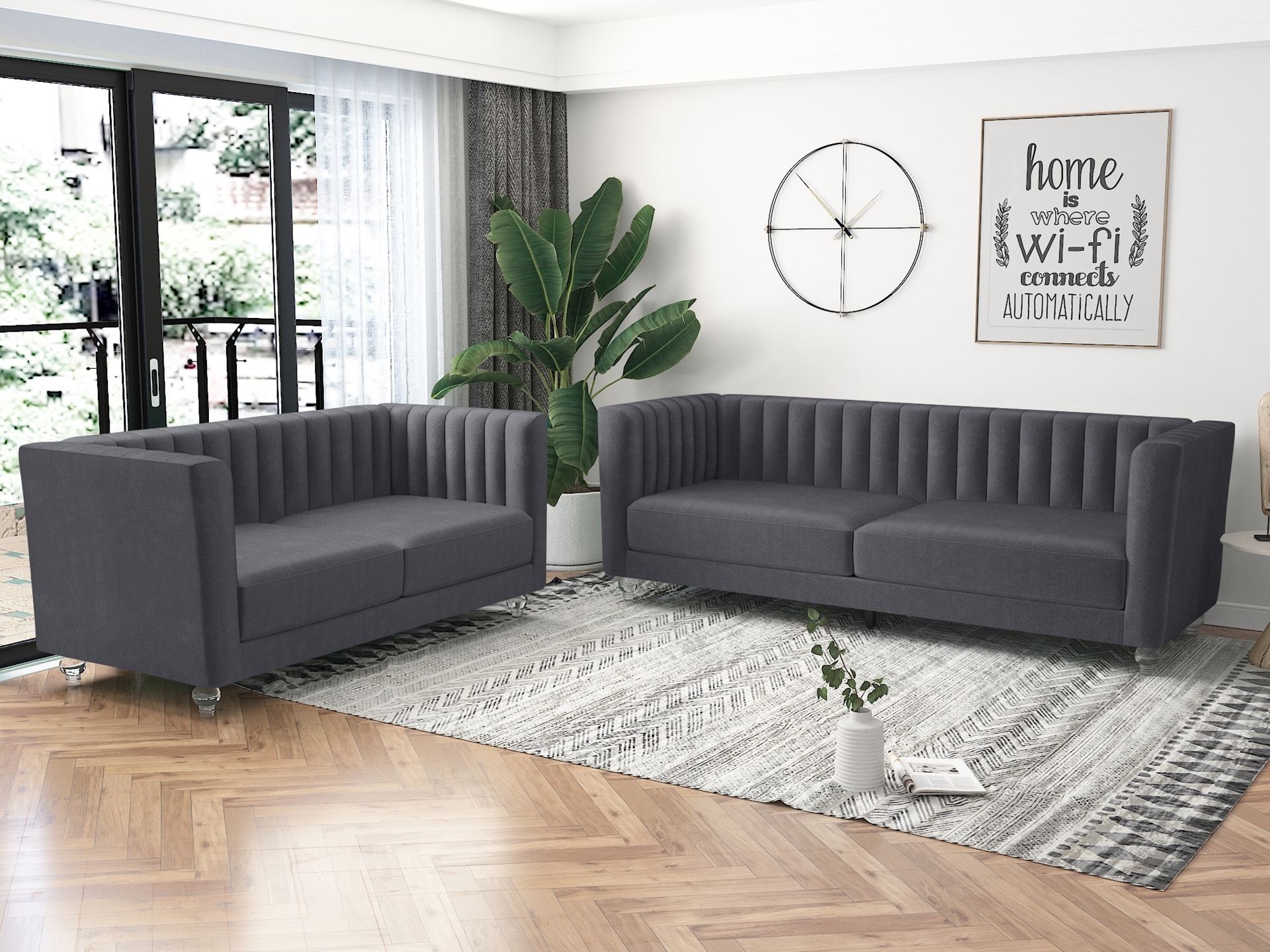 This is [MISHTI VELVET 3 pcs Sofa Range in Grey- 3 + 2 Combo] in product range [MISHTI VELVET 3 PCS SOFA RANGE IN GRAY]. To check the whole product range please Click this link.