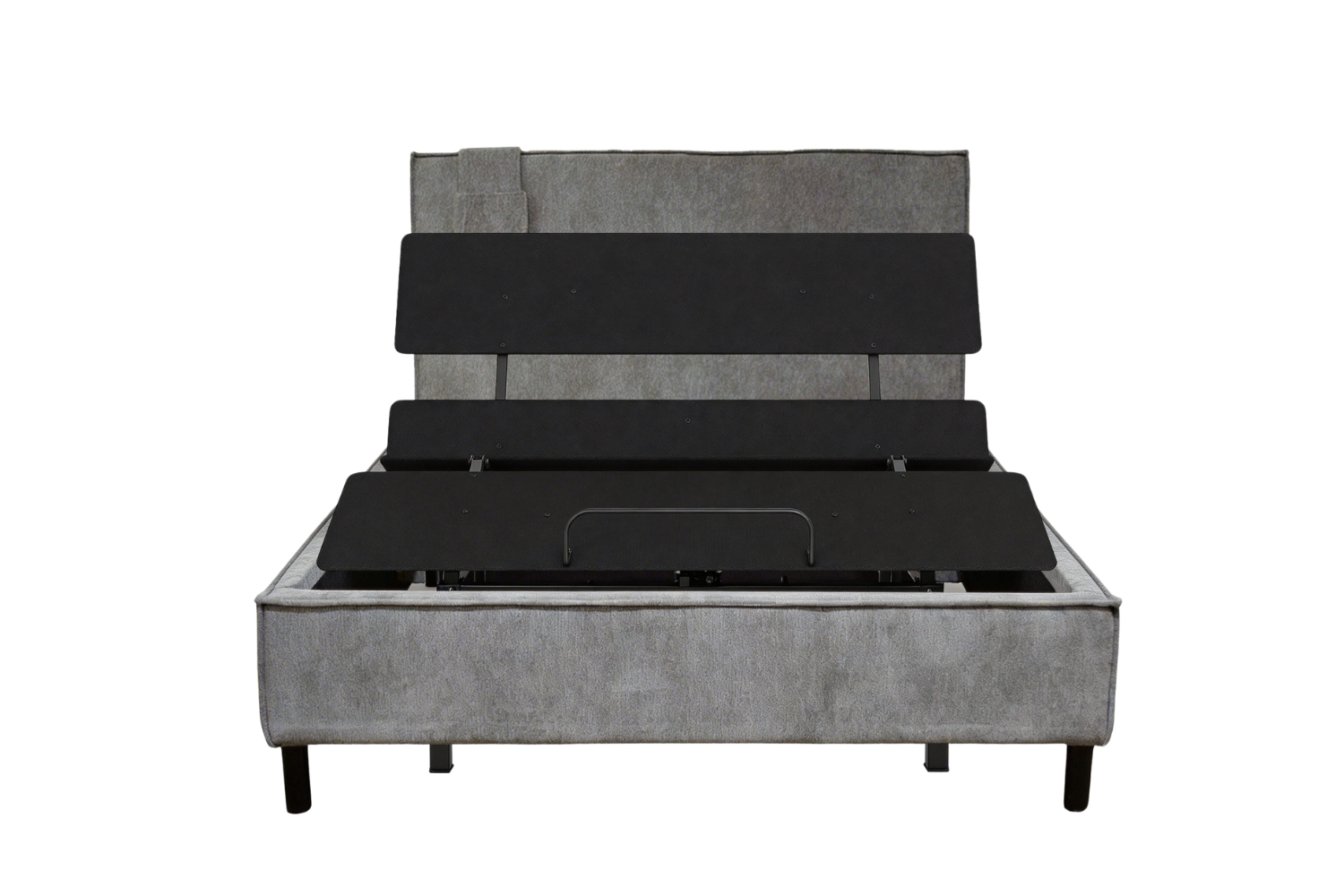 The MOTIONFLEXI Electric Adjustable Bed Frame & Base Set combines a soft, foam-padded fabric bed frame with practical hanging storage and a durable adjustable base. The base provides smooth back and leg adjustment for personalised comfort, along with quiet operation and an easy-to-use wired remote. Built with a sturdy structure and high weight capacity, it offers a comfortable, stable, and space-efficient sleep solution.