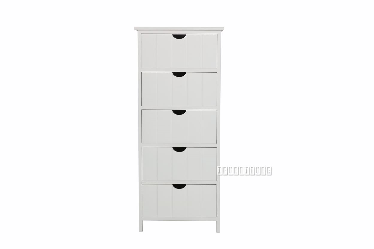 The NORTON series comprises a variety of cute, white-painted, wooden cabinets with half-moon, recessed handles. There is also a bench with a cushion and 2 drawers.