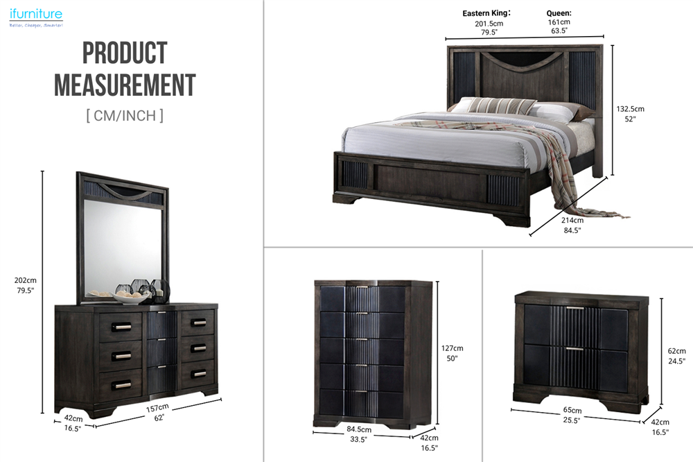 Eastern King: 79.5" (width), 84.5" (depth), 52" (height)