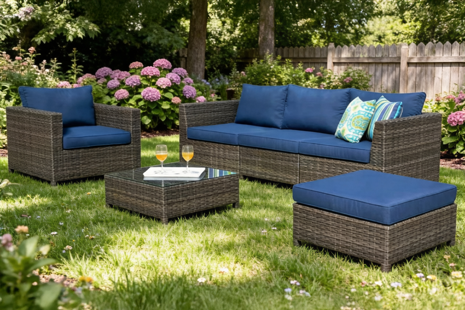 - Comfortable Seat Cushions: Thick padded seat cushions provide supportive comfort for relaxed outdoor lounging.