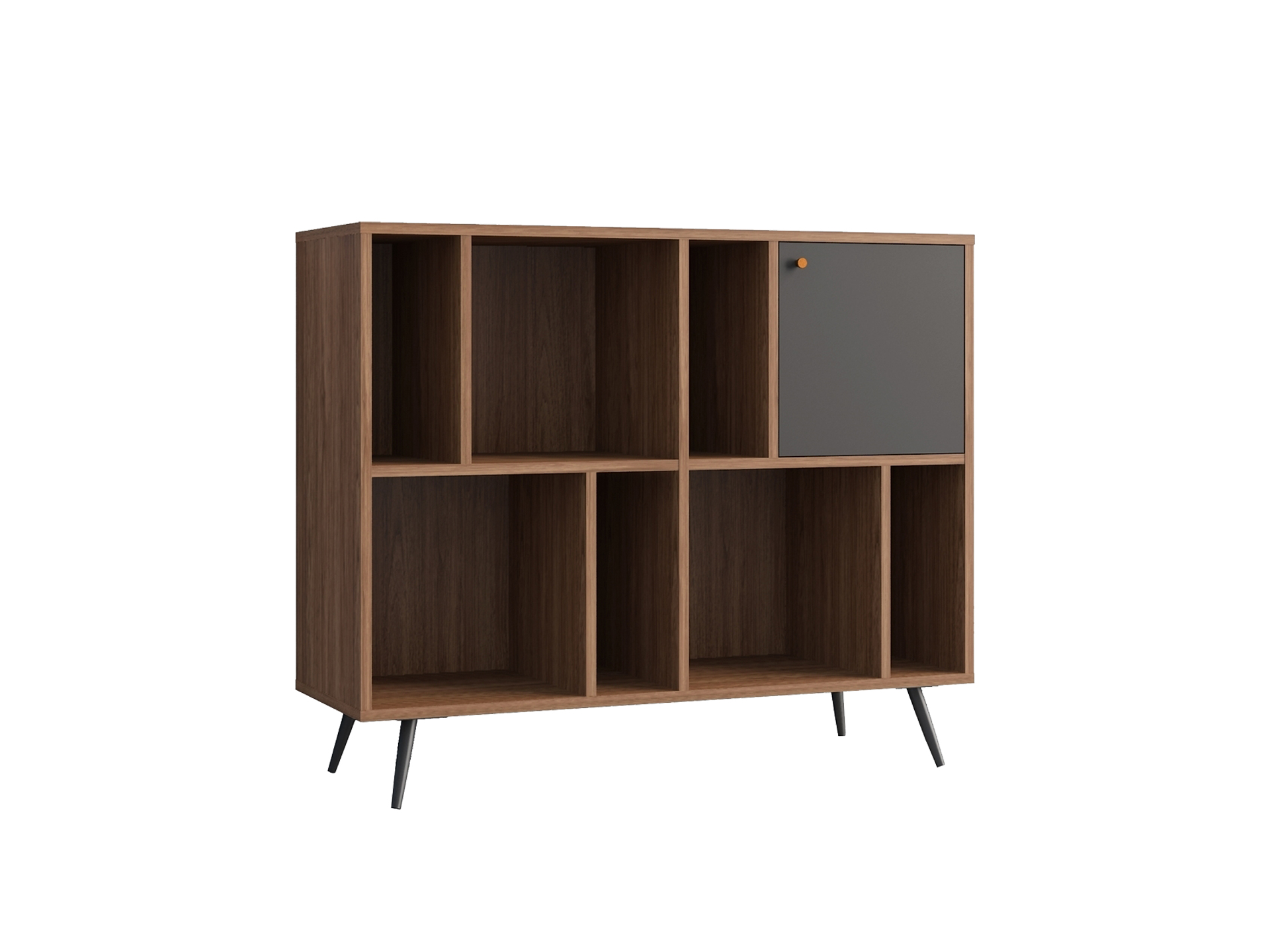 Modern and industrial design with a simple and stylish touch. The RIO series has been given a new design expression. Both the design and color combination are new compliments in the DFA range. The sideboard and cabinet come with open compartments perfect to store beautiful things that make your interior design more personal. The oak/walnut veneer gives the furniture a modern feeling and the matte anthracite lacquered fronts enhance this appearance. The inclusion of the metal legs gives the furniture an industrial touch.