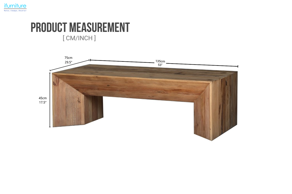 - Sustainable Reclaimed Pine Wood: Expertly crafted from reclaimed pine wood, this coffee table celebrates sustainability while showcasing the natural beauty of aged timber. The distinctive grain patterns, knots, and subtle imperfections such as cracks and wormholes add depth and character, ensuring that each piece is truly one of a kind.