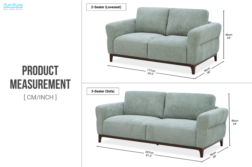 SPHERE Fabric Sofa Range (Light Green) - Loveseat+Sofa Set