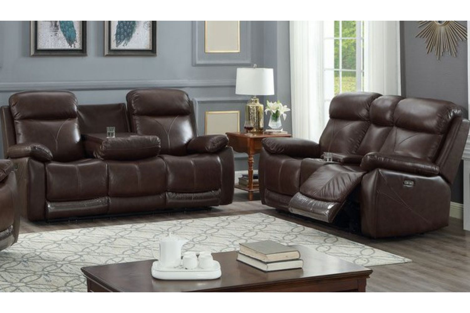 Introducing the TAZAN 1R+2RRC+3RRC Top Leather Match Power Reclining Sofa Range in sleek brown, a seamless blend of sophistication and comfort. This 3-piece power recliner set, adorned in stylish brown genuine leather/match upholstery, not only offers luxurious relaxation but also integrates modern convenience effortlessly. The sofa features two power recliners, a central tray with cup holders, and USB ports for charging, while the loveseat boasts two power recliners, a central storage console, and additional USB ports. The chair, designed without a rocker for stability, includes a power recliner and two USB ports. Elevate your living space with this technologically advanced and aesthetically pleasing ensemble – where style meets functionality for the ultimate home experience.