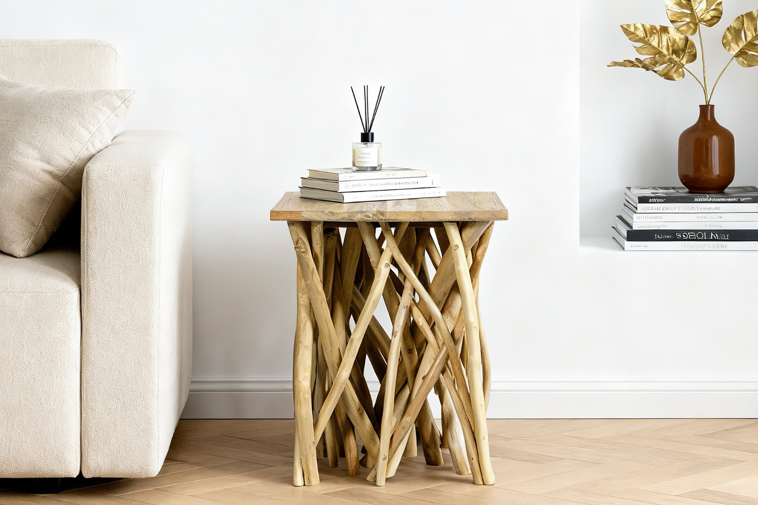 - Branch-Inspired Base Design: Unique interwoven teak driftwood branch-style legs create an organic, nature-inspired aesthetic.