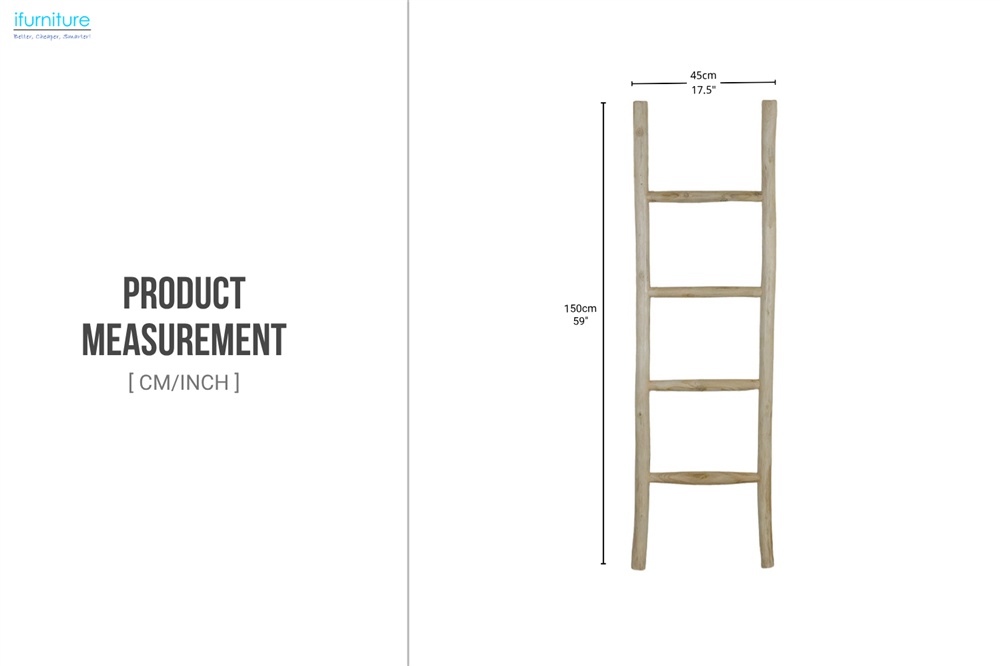 WILDBRANCH 59" Medium Teak Wood Towel Ladder-iFurniture-The largest furniture store in Edmonton, now landed in Calgary. Carry Bedroom Furniture, living room furniture,Sofa, Couch, Lounge suite, Dining Table and Chairs and Patio furniture over 1000+ products.