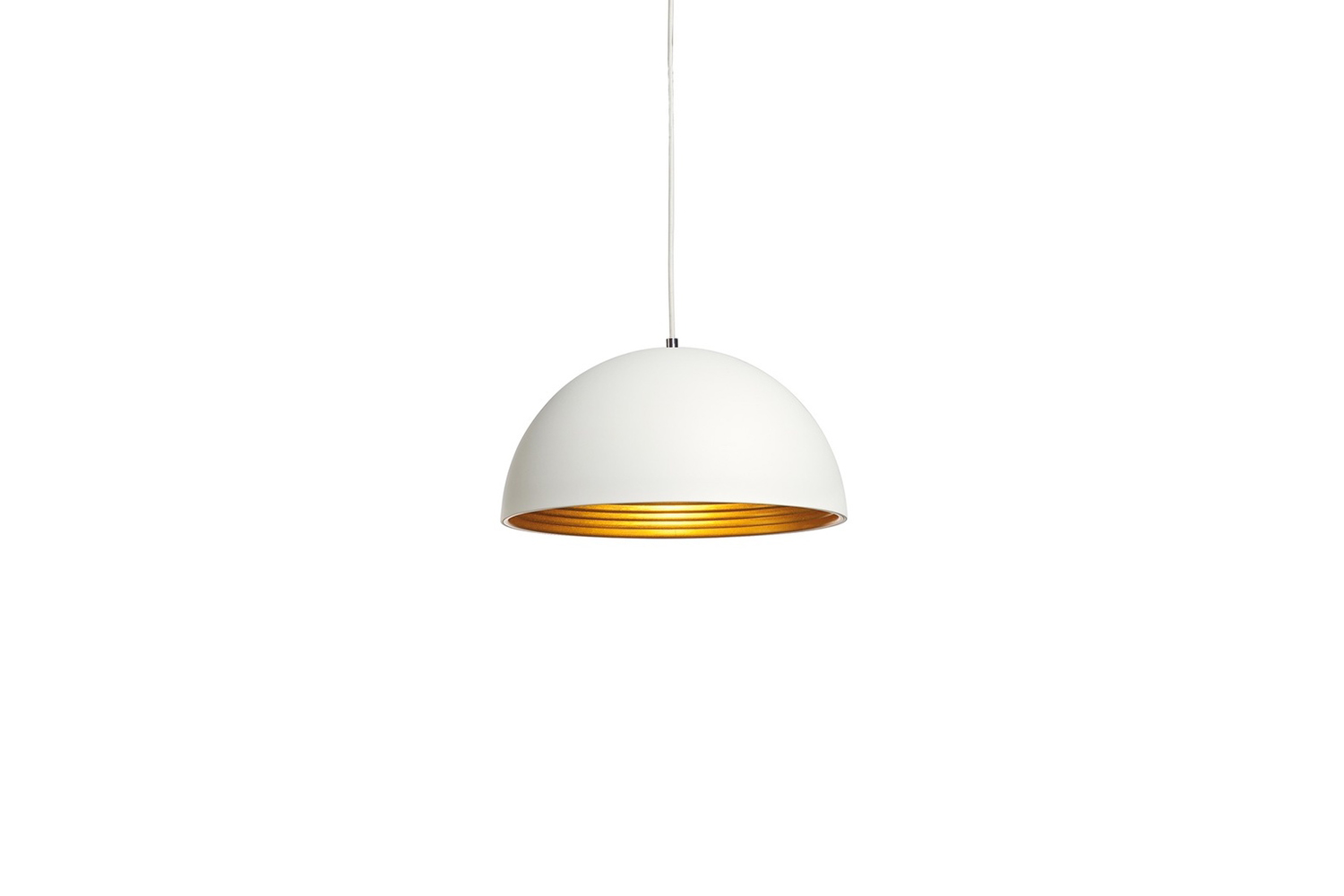 • Matte white dome shade with ribbed gold inner finish for warm ambient lighting