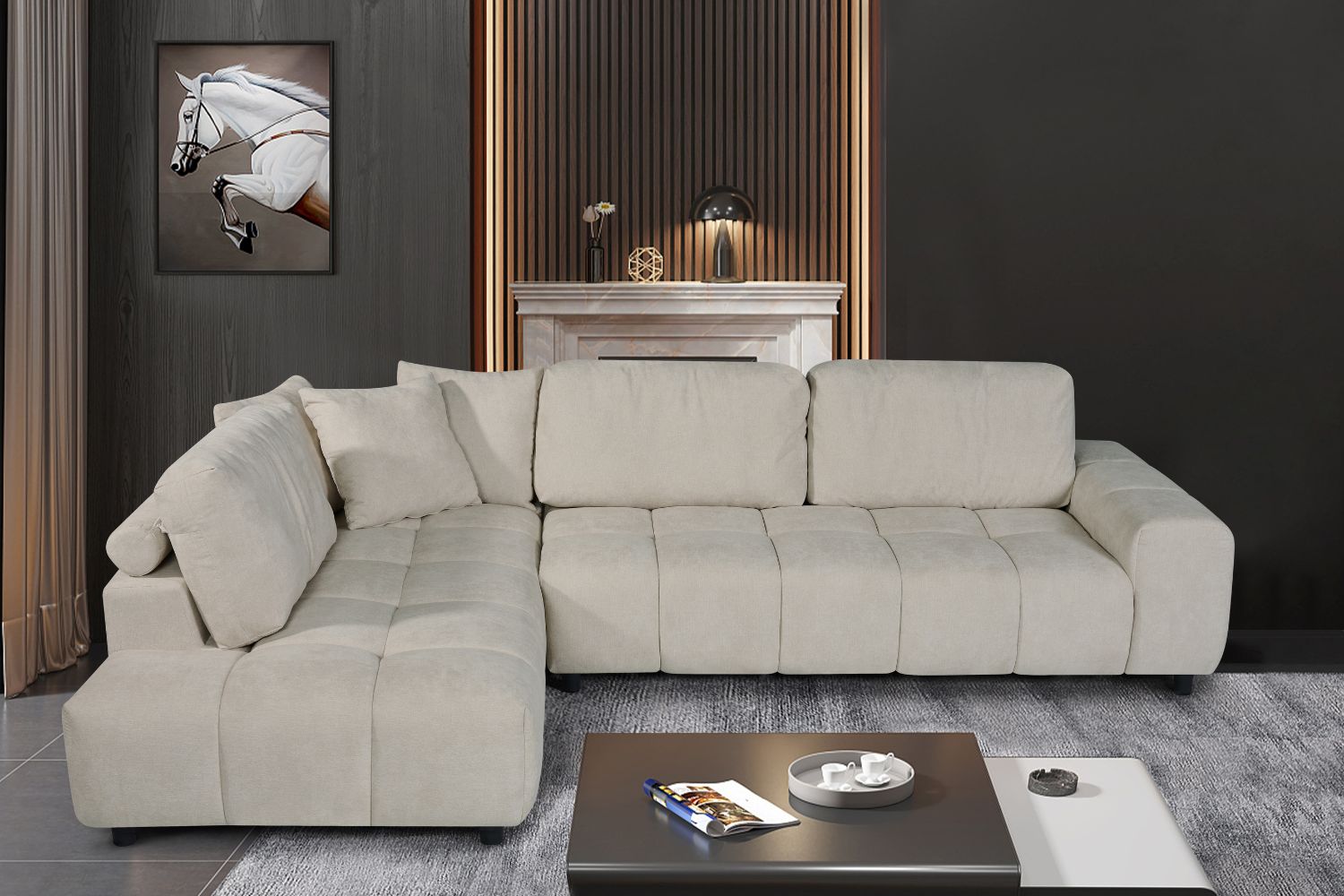 This ELMSFORD sofa combines high-quality soft fabric with a sleek, modern design, offering both elegance and comfort. Its unique three-dimensional appearance adds sophistication, while the spacious seating, deep seat depth, and high backrest provide exceptional comfort and support for multiple people. The strong wrapping sensation enhances relaxation, and the timeless tufted detailing offers a plush, inviting feel. To further elevate your experience, the sofa includes 3 extra small pillows for added support and luxury. Perfect for any living space, it blends style, comfort, and functionality seamlessly.