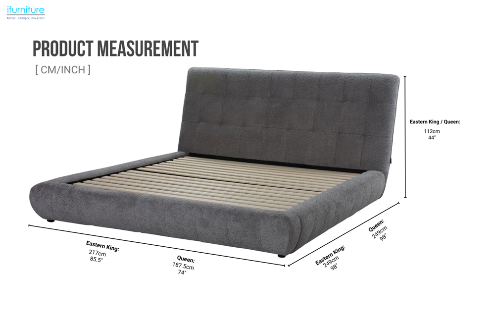 AMORA Fabric Bed Frame(Grey) - Eastern King $799 Order Now