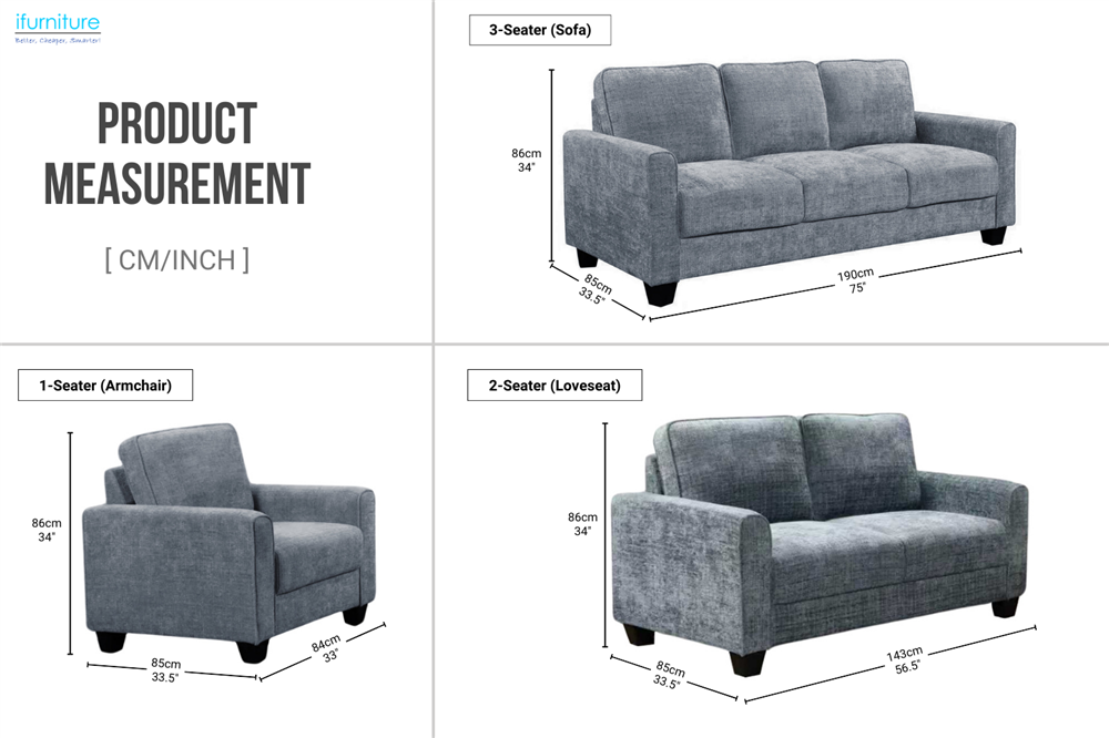 ANTONIA Fabric Sofa Range (Blue) - Armchair + Loveseat + Sofa Set