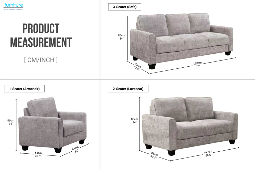 ANTONIA Fabric Sofa Range (Grey) - Armchair + Loveseat + Sofa Set $979 Order Now
