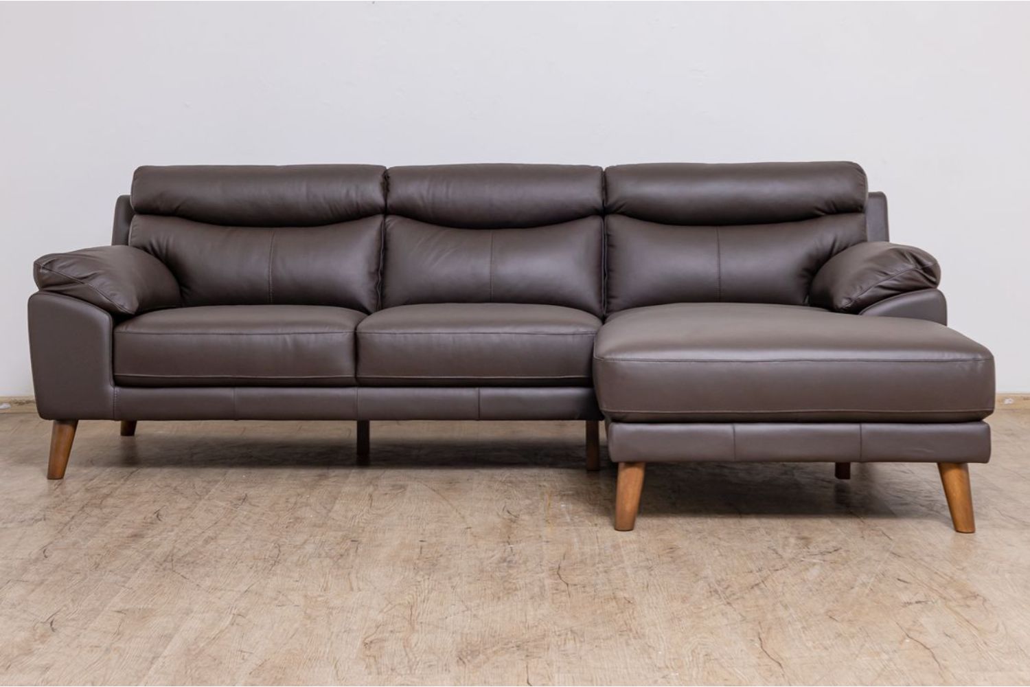 ANVIL 100% Genuine Leather Sectional Sofa (Dark Brown)