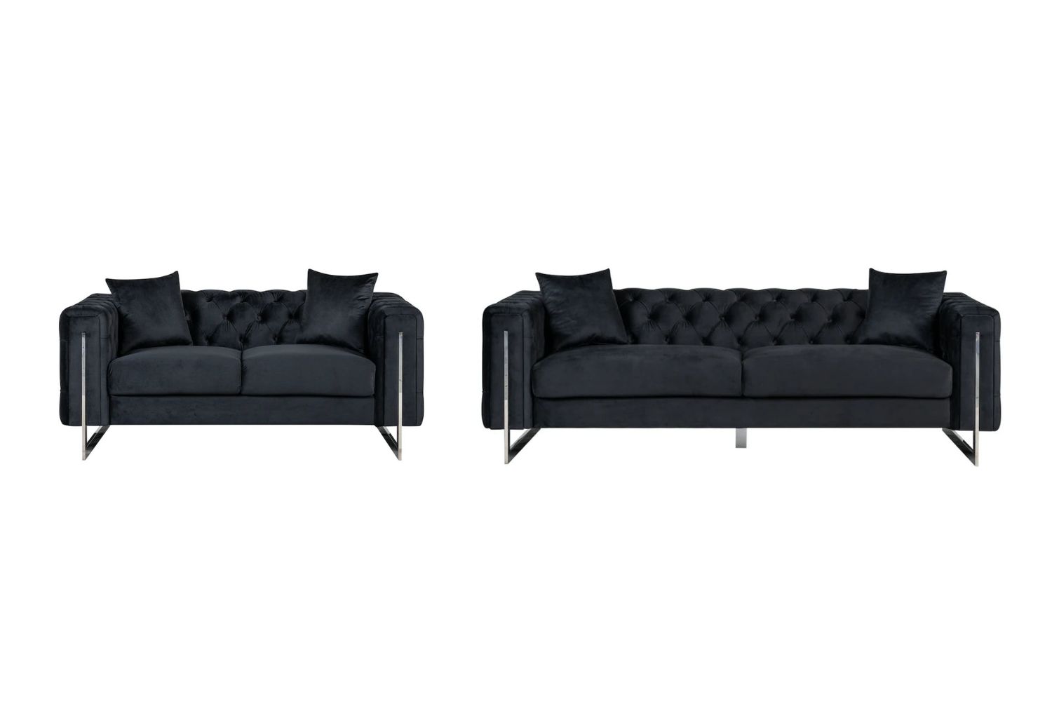 (Out of Stock) ASTRA Velvet Sofa Range (Black) - Loveseat+Sofa Set