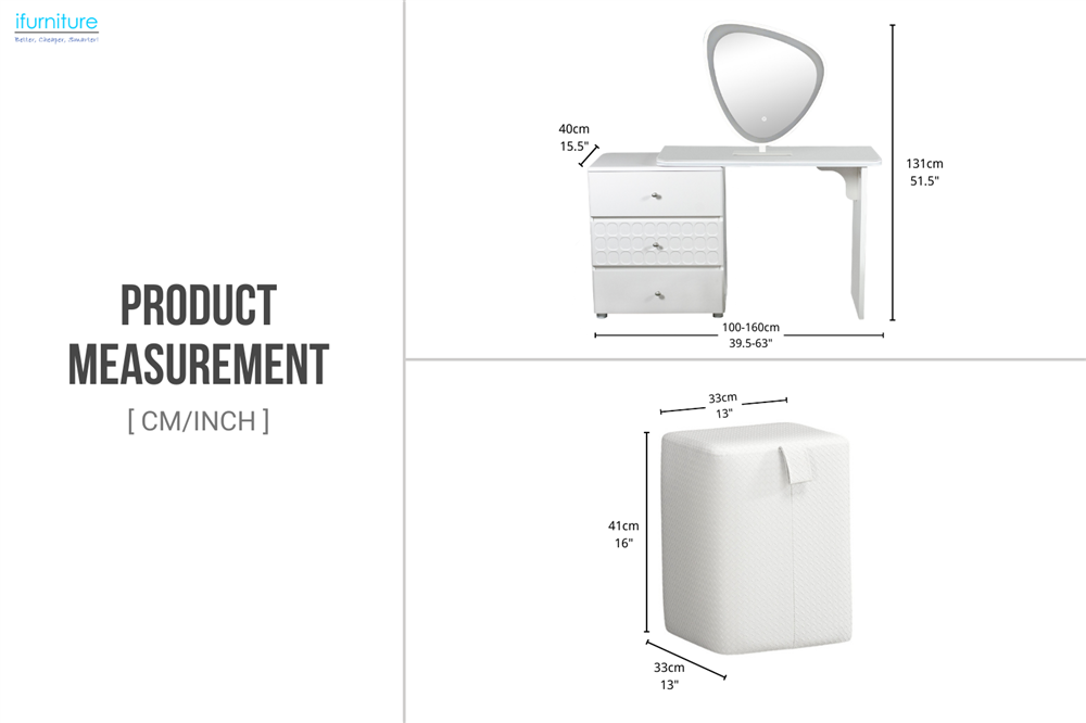 AURELIA 3-Drawer Extension Dressing Table with LED Mirror and Makeup Stool Set-iFurniture-The largest furniture store in Edmonton, now landed in Calgary. Carry Bedroom Furniture, living room furniture,Sofa, Couch, Lounge suite, Dining Table and Chairs and Patio furniture over 1000+ products.
