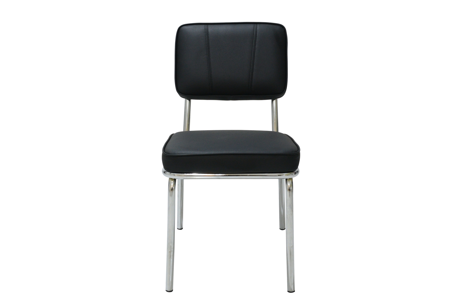 The BAZA dining chair has a black PU seat and backrest, while the frame is of robust, tubular, chromed steel.