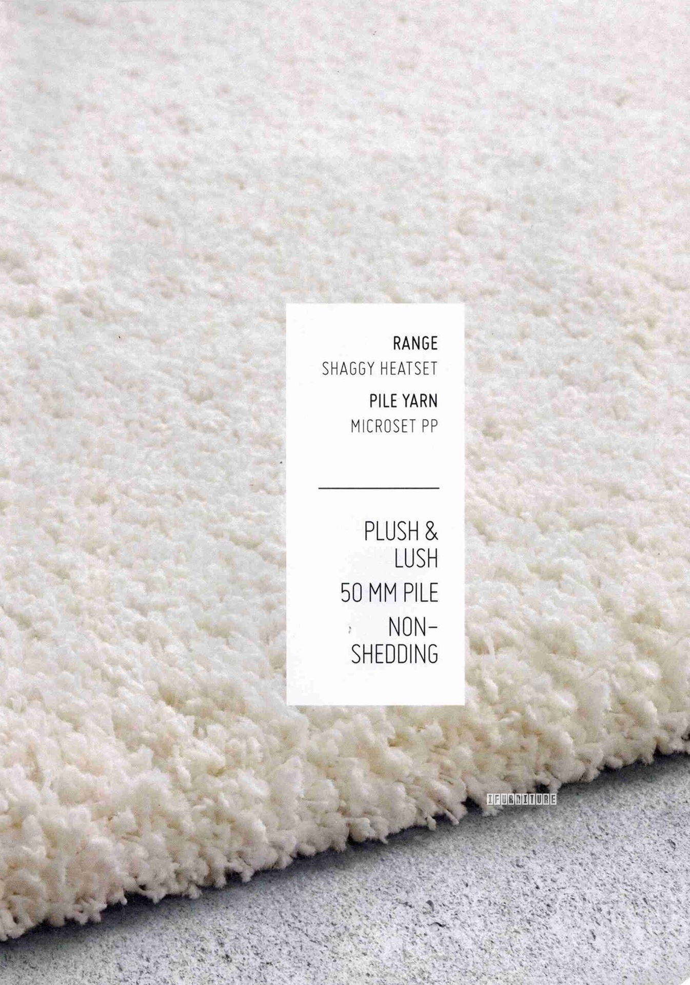 A thick soft shag rug in neutral colours that is luxurious underfoot. It will complement any room settings and is hardwaring and stain resistant