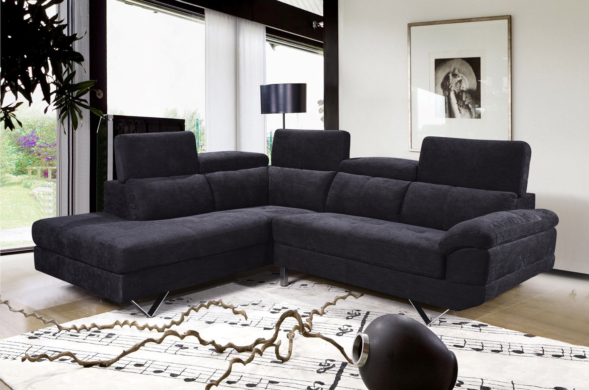 The BRONTE is a smaller L shaped sofa, for a limited space. The sofa is a comfy two-seater; you can get it with chaise on Left or Right side, to suit your room. BRONTE is upholstered in a soft, charcoal coloured fabric. The headrests can be folded flat, and it has very stylish polished legs. The sofa and chaise ‘clip’ together; however, if you suddenly need the space, you can unclip and separate them.