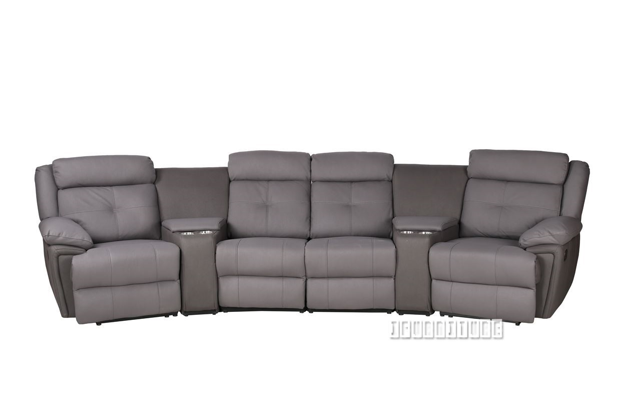 The Canyon sofa series comprises 4 reclining seats and two wedges; each wedge contains lidded storage, and two cup holders.