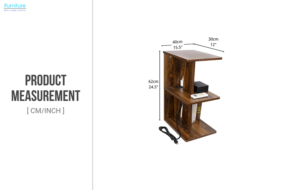 • Dual Power Outlets & USB Ports: Equipped with two US-standard three-prong outlets and dual USB charging ports, this side table ensures easy access to power for your devices, providing convenience and organization in one compact unit.