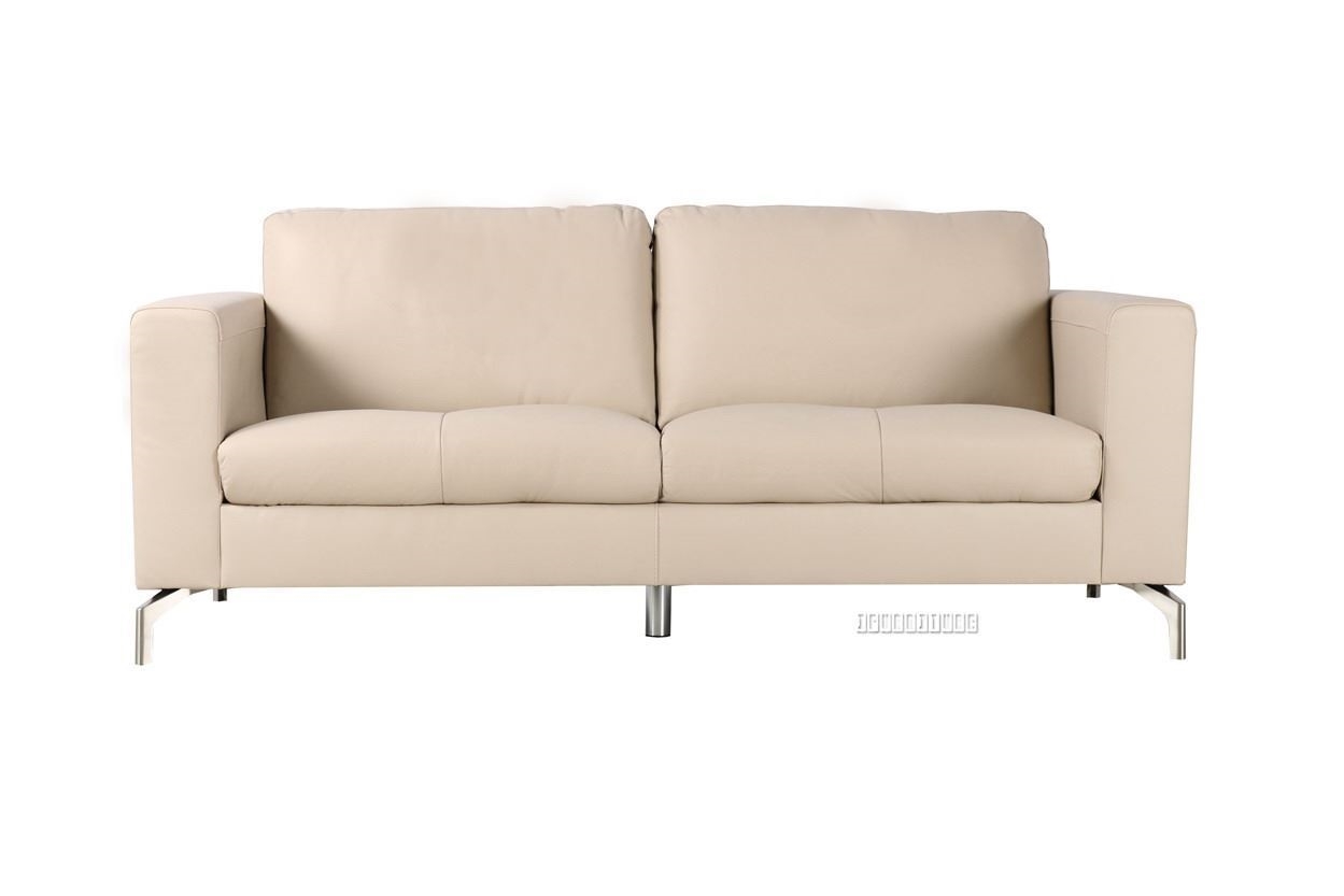 The CINDY leather sofa series is available in Beige, or Dark Chocolate livery.