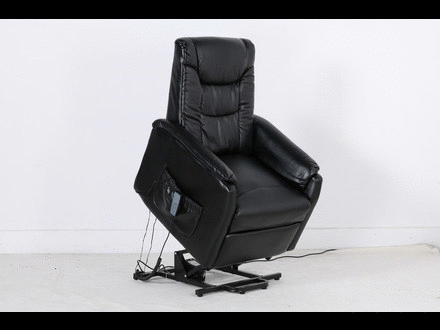 FEATURES: *TWO MOTORS -extend or retract the chair (with or without the footrest adjustment) & Relax *Remote controlled, electric lift (& lower), easy chair *Vibrates at touch of button in 4 areas *15 or 30 min vibrate timer *Comfortable and adjustable seating *8 patterns of vibration *Adjust strength of vibration *Available in Black air leather fabric *On wheels for easy moving *Pocket for remote on side of chair *Provides help to those needing assistance getting in/out of their seat