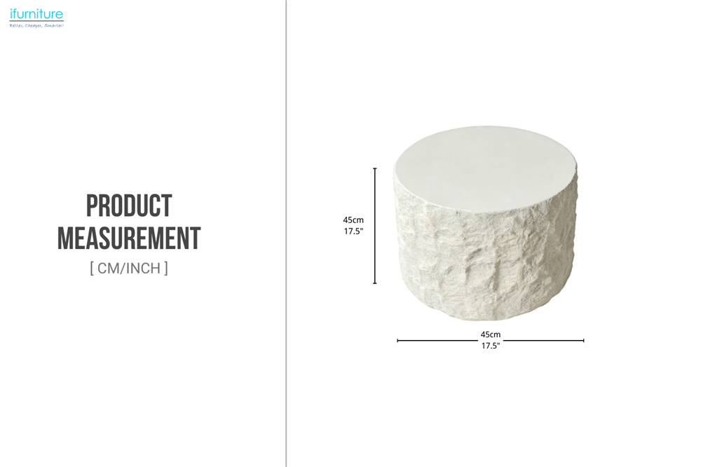 Made from FRP (Fibreglass Reinforced Plastic), this side table pairs durability with a lightweight build for everyday convenience. The textured stone-like sides add depth and character, while the smooth, round top offers a clean, practical surface for décor or daily use. Its modern, sculptural form makes it an eye-catching accent piece that elevates any contemporary living space.