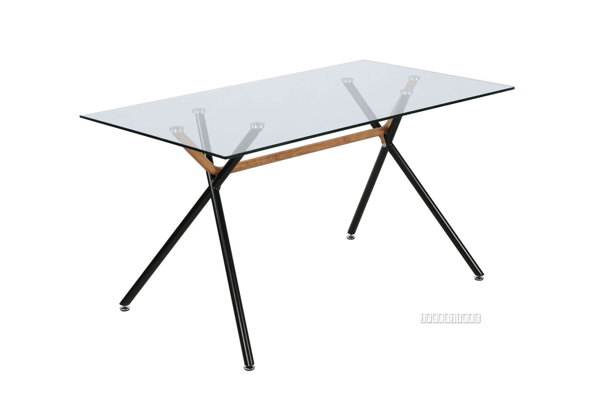 Our Cosmo Dining table comes with tempered clear glass tops and strong metal cross legs style in black finish.